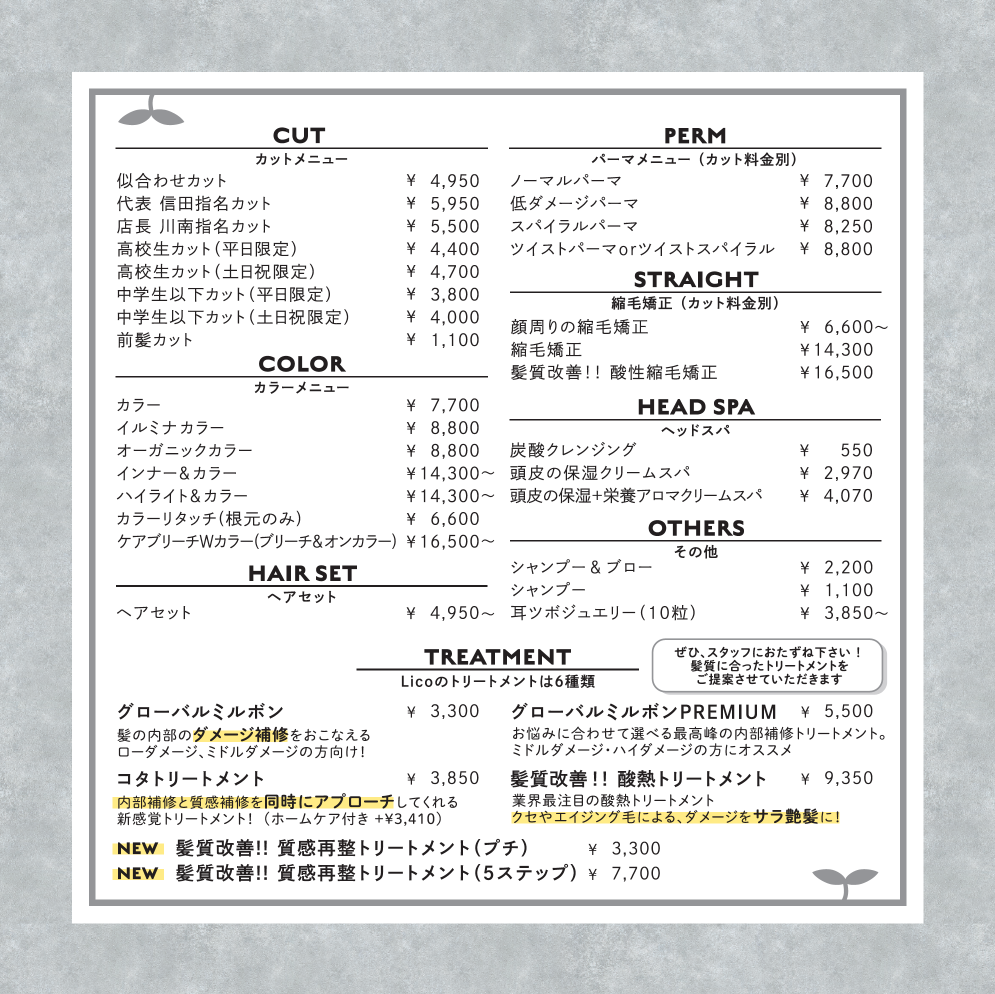 新価格表