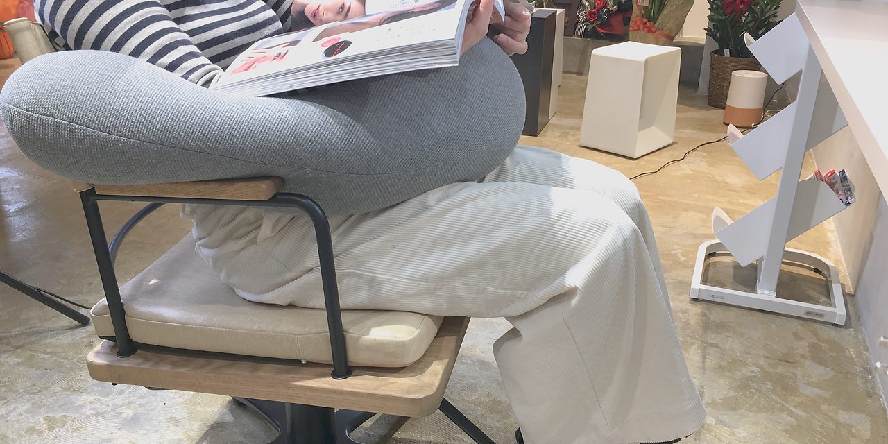 カラーやパーマ放置時間に、腕の下にクッションを挟んでもらいます!