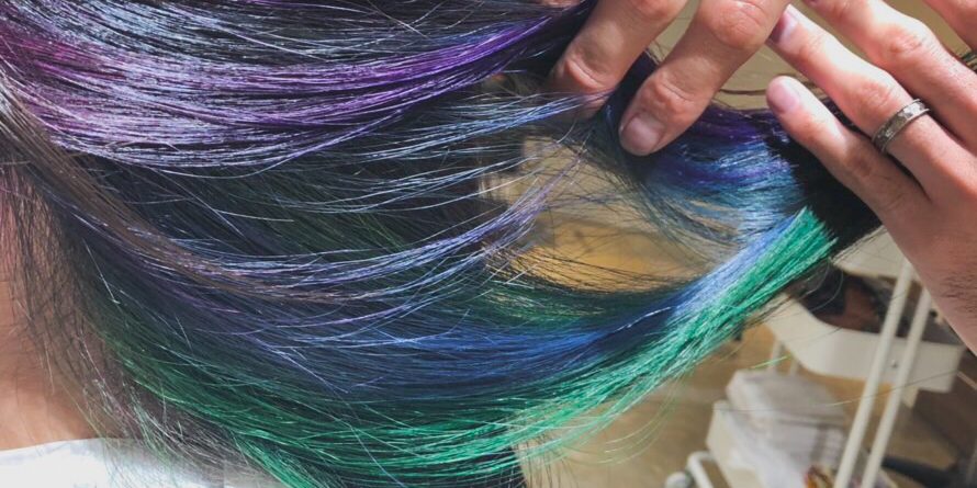 先日お越し頂いたお客様に、紫・青・緑のカラーを使ってユニコーンカラーをしました(^^)