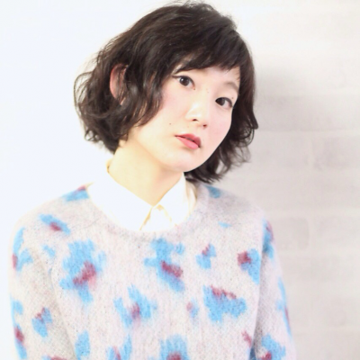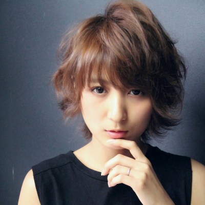 大人っぽくて可愛らしい透け感ショートのスタイルです。全体にパーマでゆるく動きをつけているので、朝のスタイリングはクリームワックスでもみ込むだけの簡単スタイリングでOK!